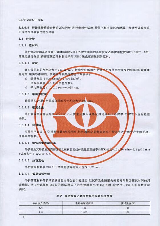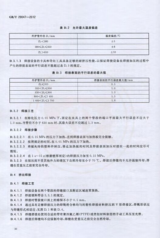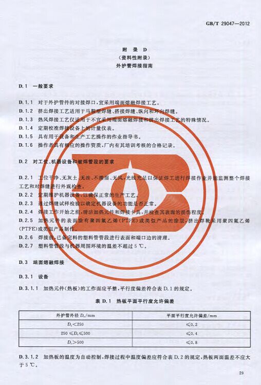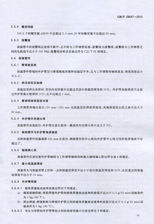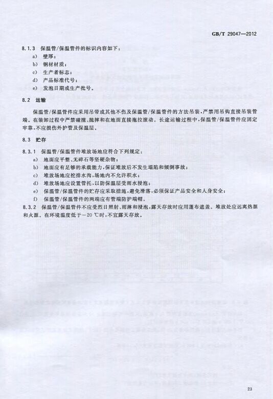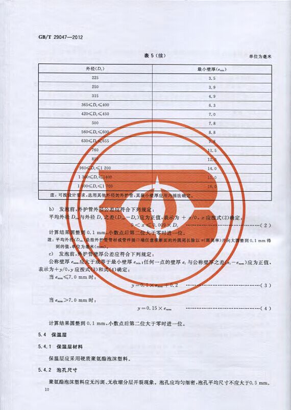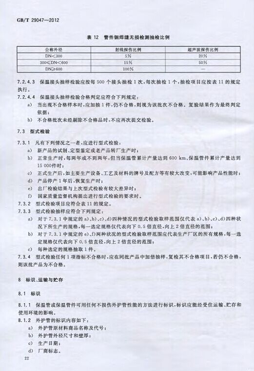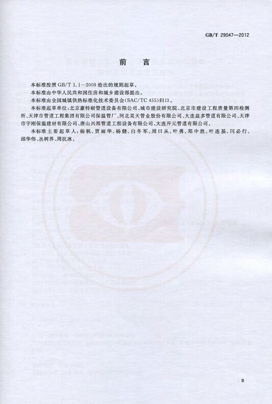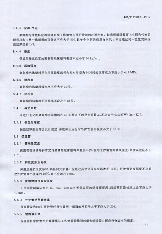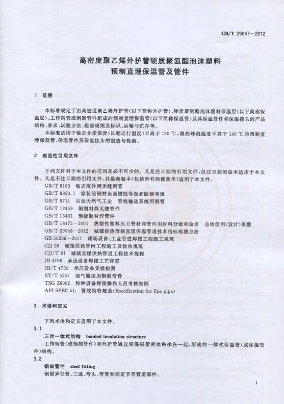 GB/T29047-2012 高密度聚乙烯外护管硬质聚氨酯泡沫塑料预制直埋保温管及管件国家标准 来源:焱森高科装备 日期:2016/5/3 浏览次数:1666 GB/T29047-2012 高密度聚乙烯外护管硬质聚氨酯泡沫塑料预制直埋保温管及管件国家标准 上一篇:本公司生产的高密度聚乙烯预制直埋保温管 上一篇:保温钢管的结构机理 分享到:0 用手机看 拍下二维码,信息随身看 试试用微信扫一扫,在你手机上继续观看此页面。