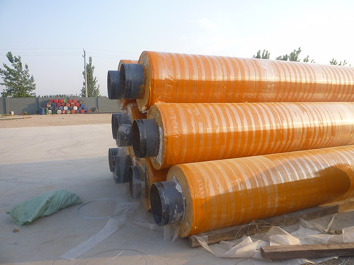 (4)机械缠绕玻璃纤维增强塑料外护层聚氨酯泡沫塑料预制直埋保温管